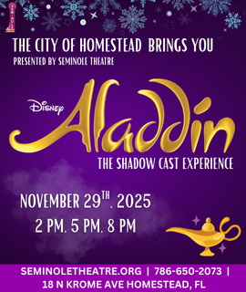 It is the policy of the Seminole Theatre to comply with all of the requirements of the Americans with Disabilities Act. The facility is accessible and assistive listening devices are available in the main auditorium. To request materials in accessible format, and/or any accommodation to attend an event at the Seminole Theatre, please contact the box office 786-650-2073, This email address is being protected from spambots. You need JavaScript enabled to view it., at least five days in advance to initiate your request, TTY users may also call 711 (Florida Relay Service).
